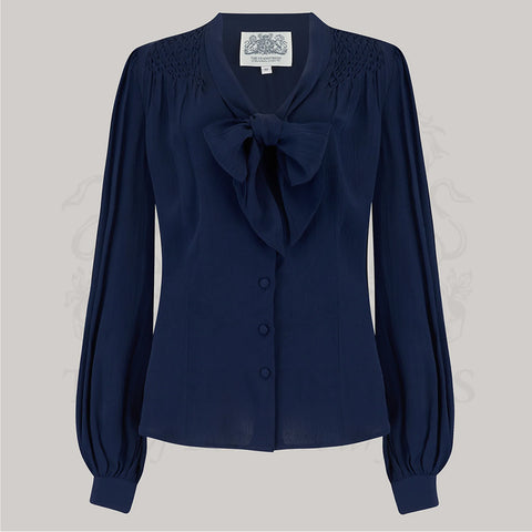 Seamstress Of Bloomsbury 1940s Inspired Poppy Blouse In Navy Blue -