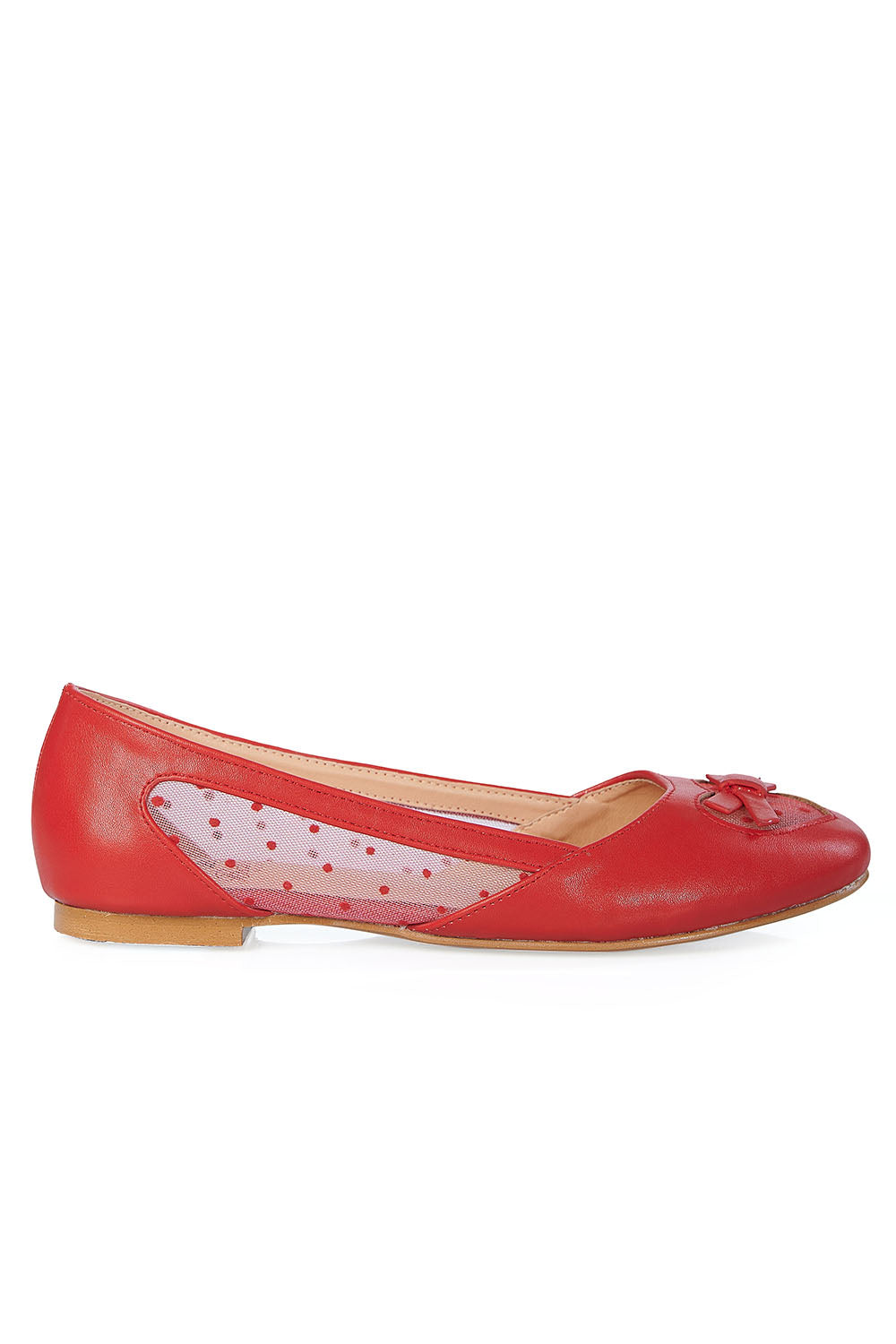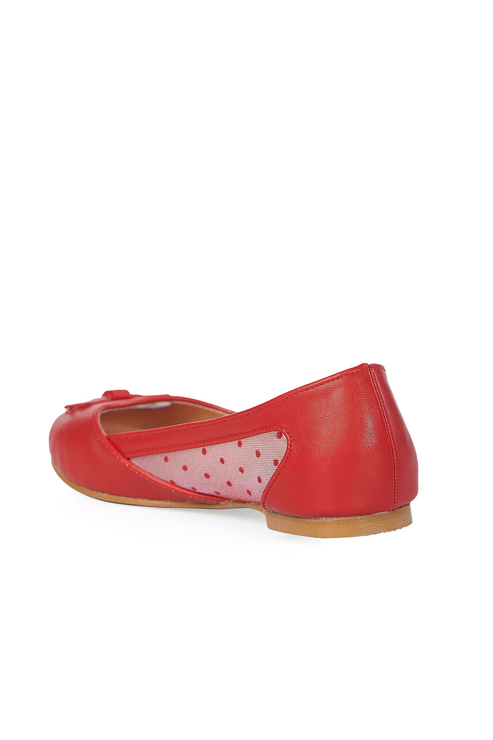 BALLERINA FLAT WITH MESH INSERT AND BOW DETAIL, UPPER FAUX LEATHER AND POLKA DOT MESH LINING, RUBBER OUTSOLE, REGULAR FIT, VEGAN FRIENDLY. HEEL 1 CM