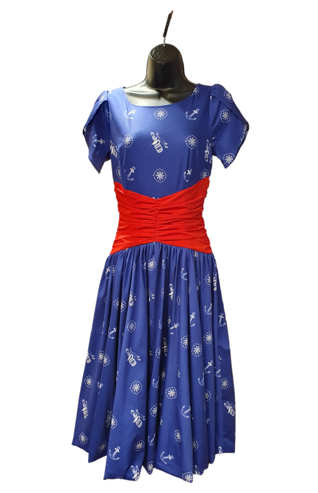 Not only is this dress an exclusive, but the actual print on the material is too!! We had a fabulous lady (Charlotte) help us with creating this nautical sailor theme design that you see throughout the blue material.