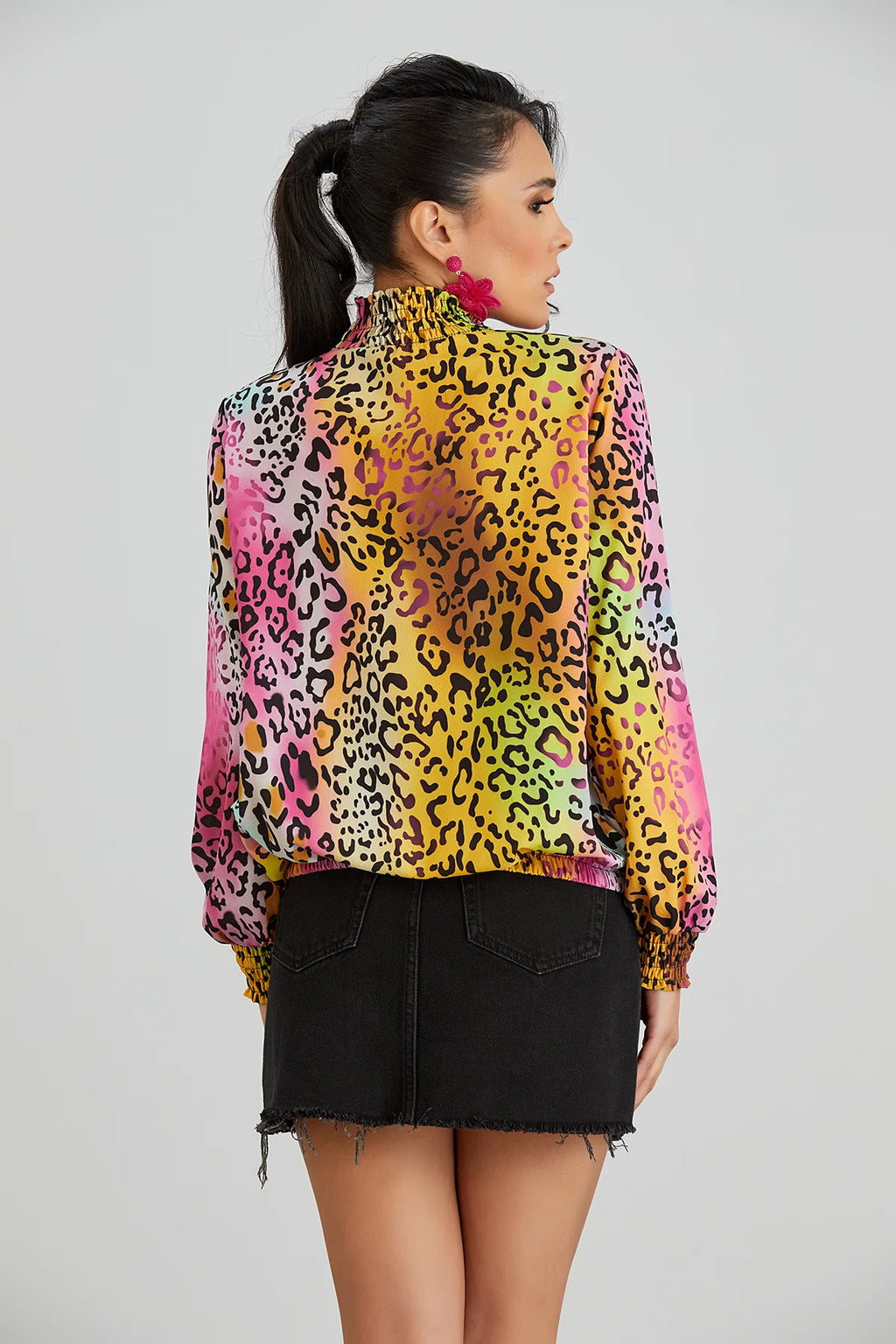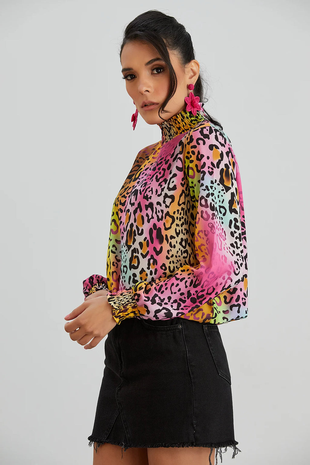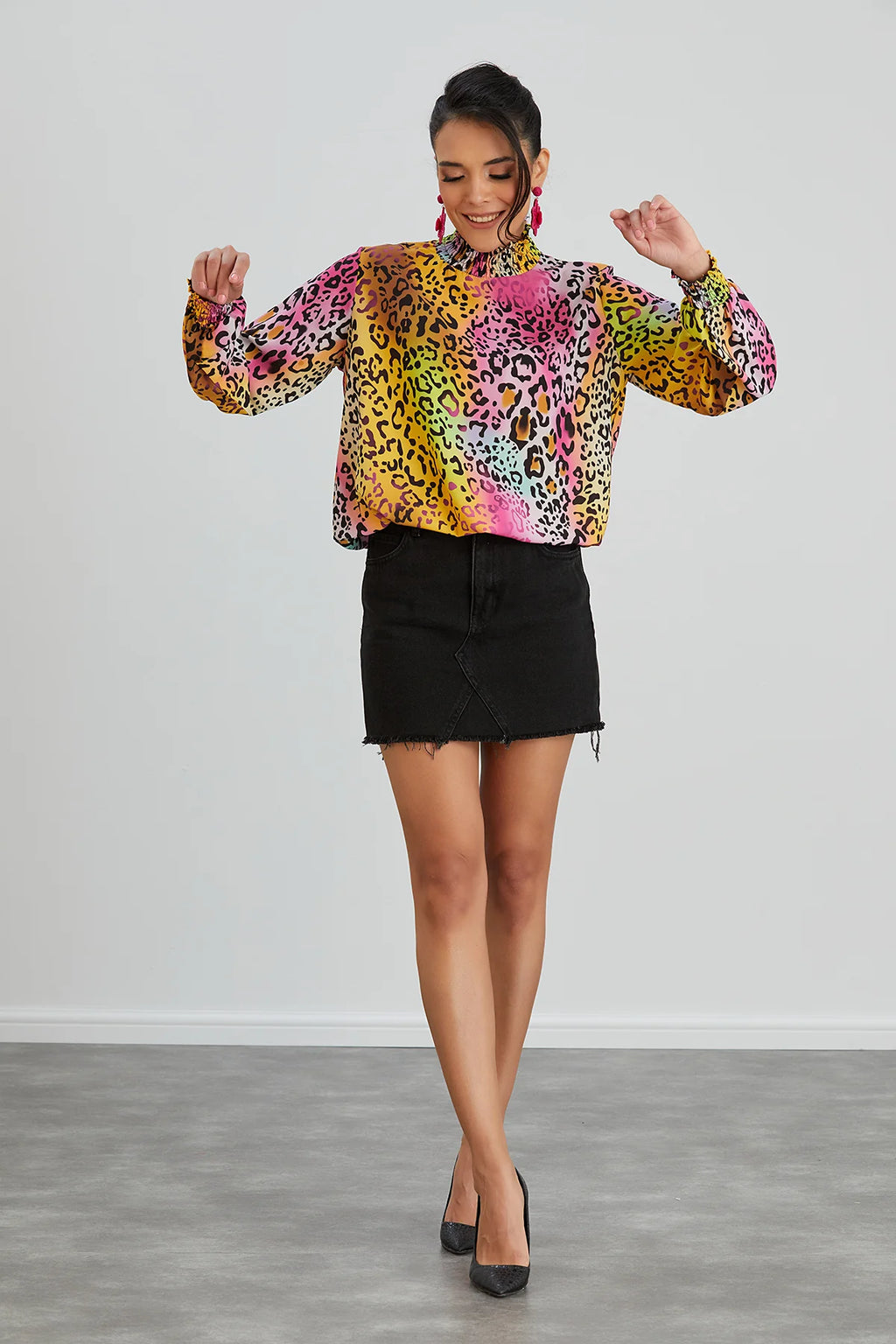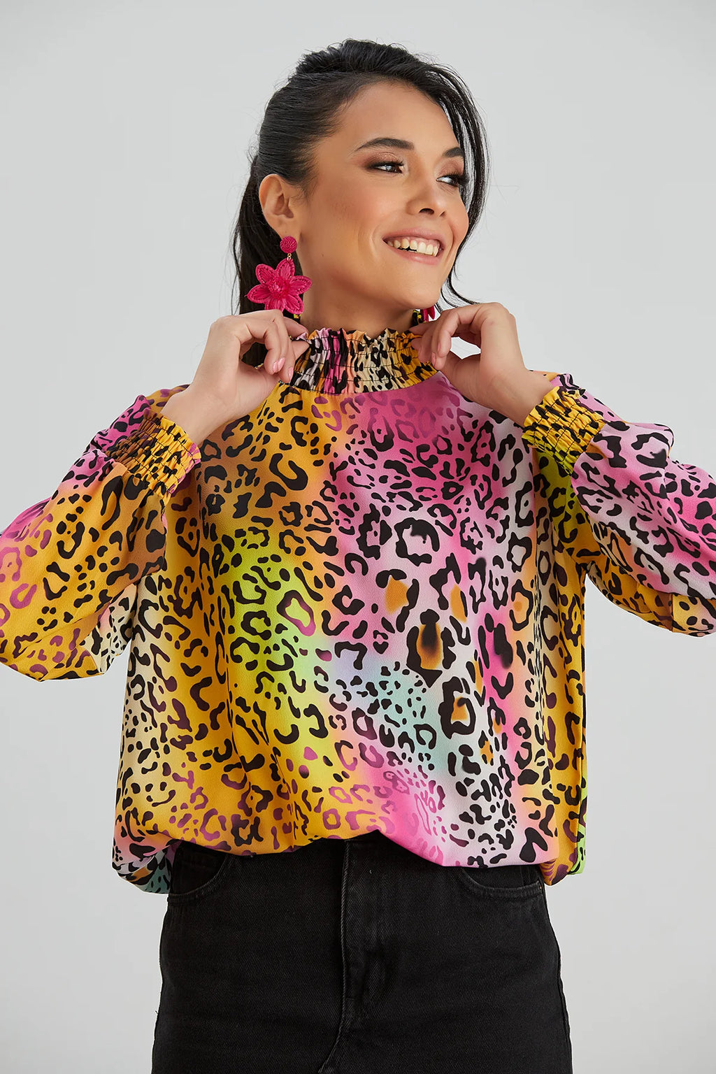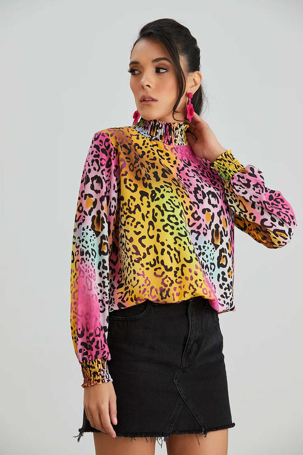 Add a splash of color and pattern to your collection with the High Neck Oversize Top in Pink Leopard and make every moment a fashionable one!