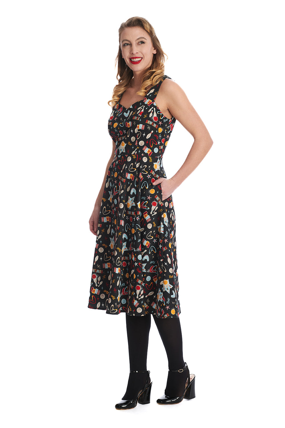 Let's Go Bowling Cardigan 1950s Inspired Swing Dress