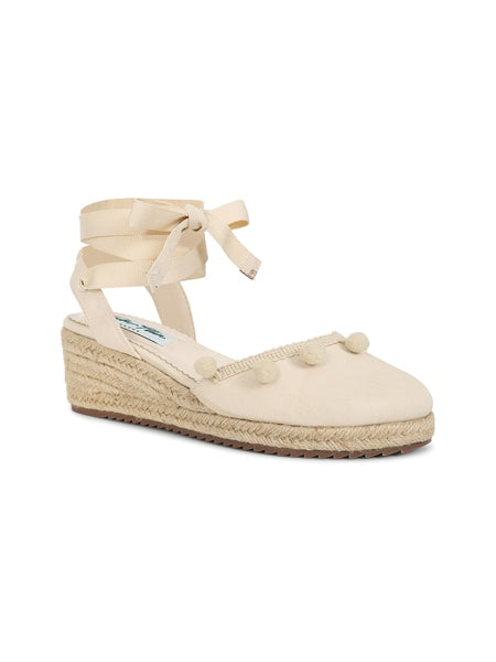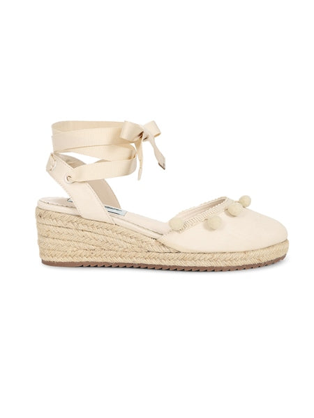 • Features a low wedge roped detailed heel with a series of adorable pom-poms across the front of the closed vamp.