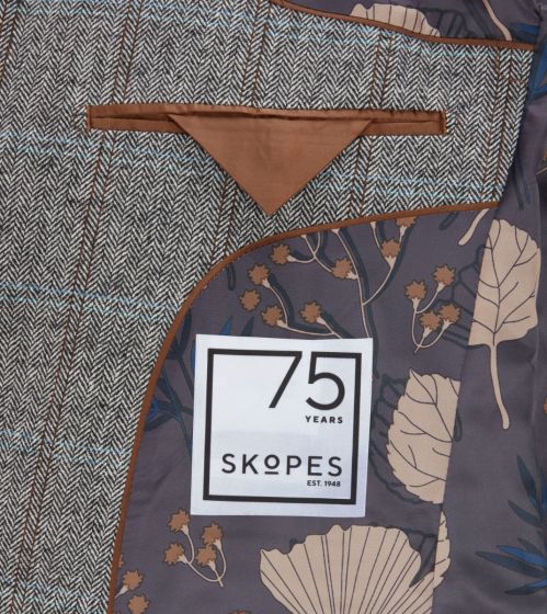 I’m Rowan, a single-breasted suit jacket in a silhouette-defining fit. That’s just the start of my qualities though. I’m cut from a wool-blend cloth with a grey herringbone check, and finished with a printed lining and brown suede trim. Spot on if you like a traditional look.