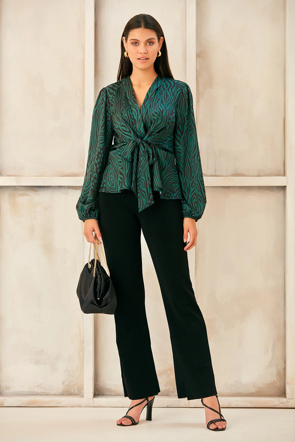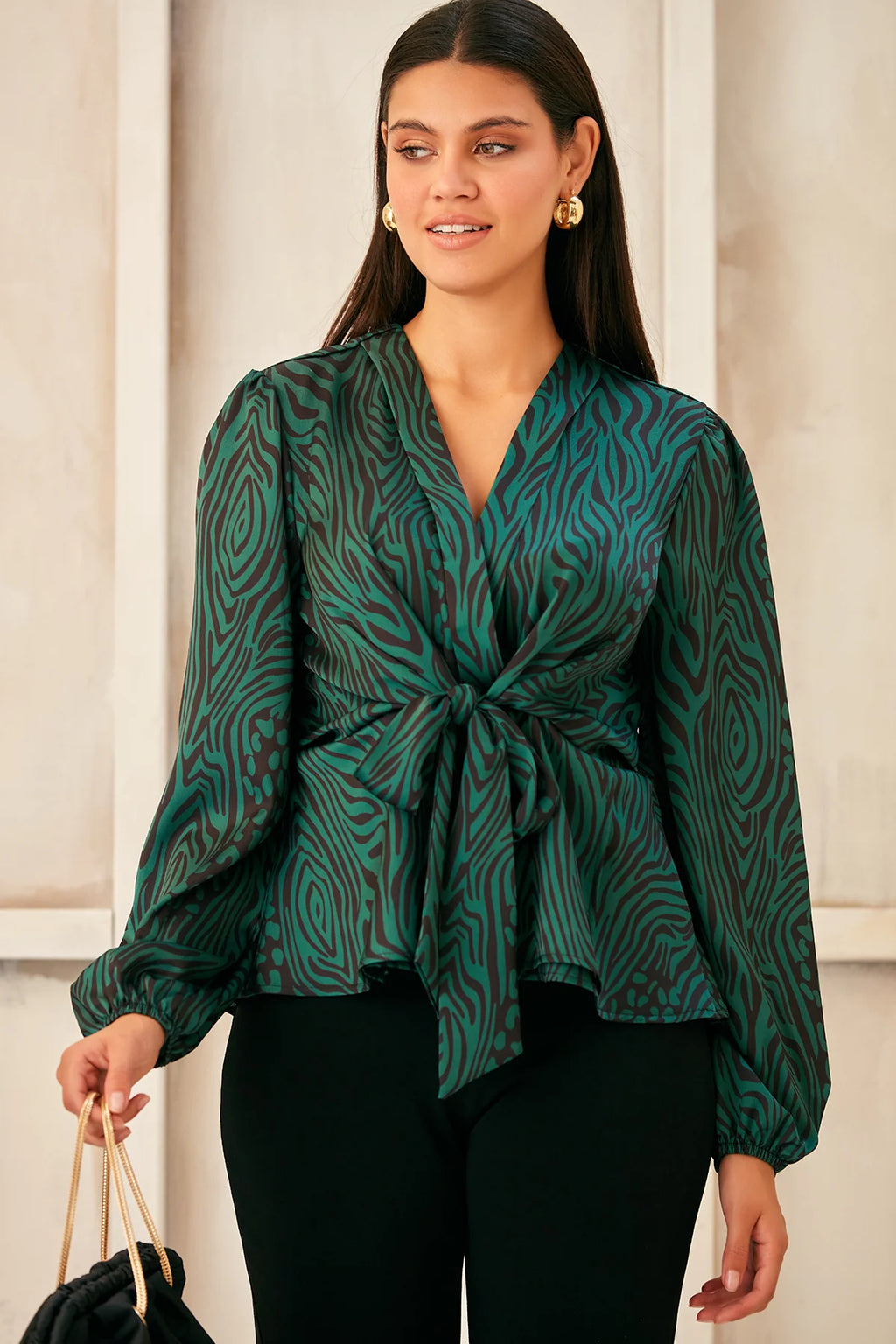 V Neck Wrap Satin Top