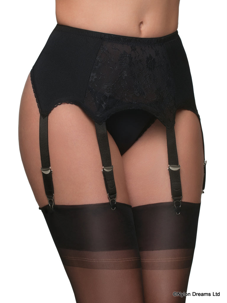 6 strap suspender belt with a floral lace front panel, also comes with high quality metal clips and adjusters, which mean they are durable for long life.