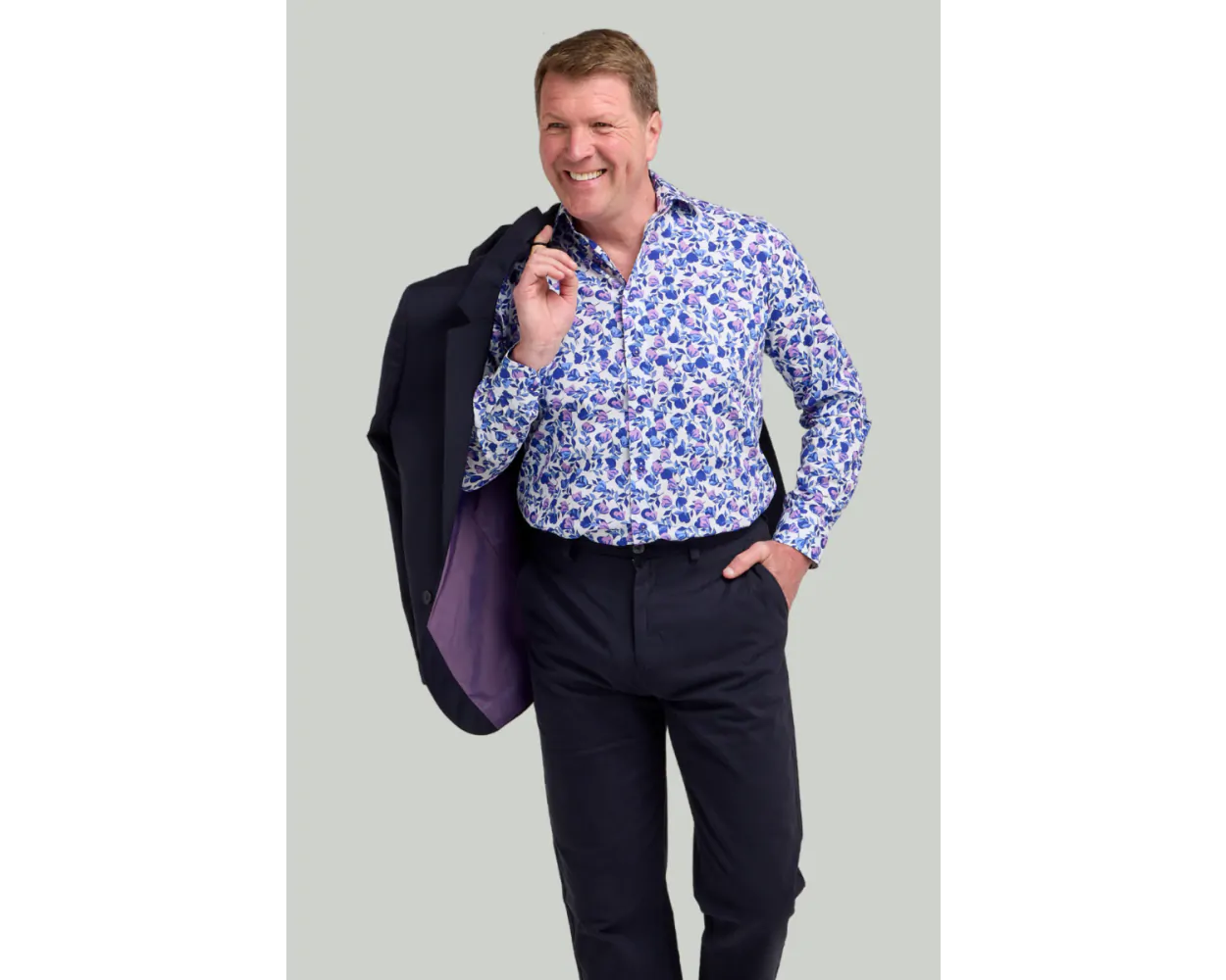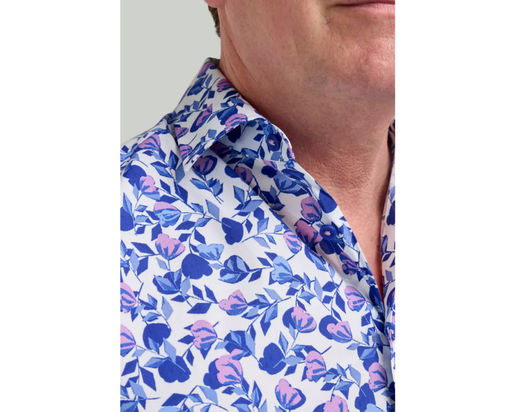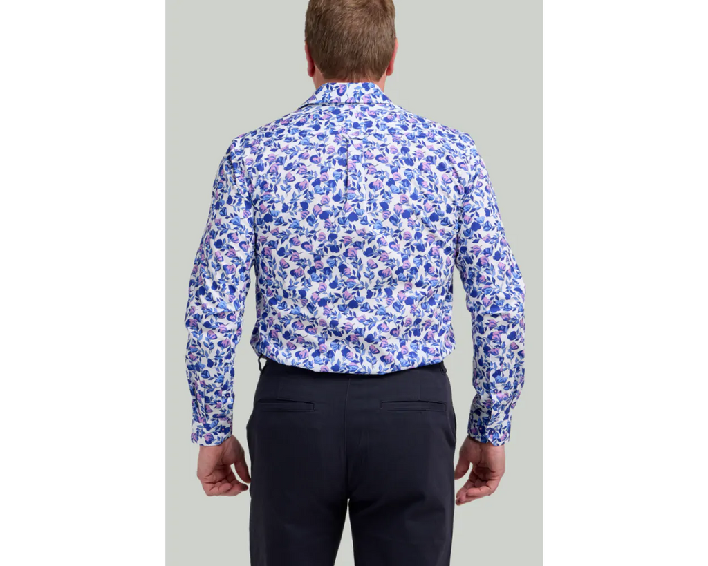 Floral shirts always add a touch of personality to a man's wardrobe that creates a smart casual look for all occasions. Designed for the modern gentleman seeking a touch of sophistication, this timeless floral pattern in blue and pink colourways exudes elegance and charisma, making a statement wherever you go.