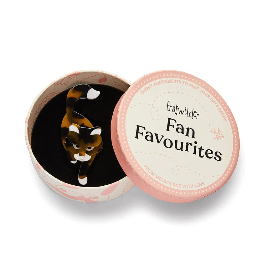 This 2024 Fan Favourites edition of Erstwilder's Meandering Monday brooch has been hand-assembled from a combination of tortoiseshell and white solid resins for an elegant feel. Originally released in 2010 (prior to Erstwilder formally adopting its brand name) this is the first time the design has been updated and recoloured, making it the official second edition!