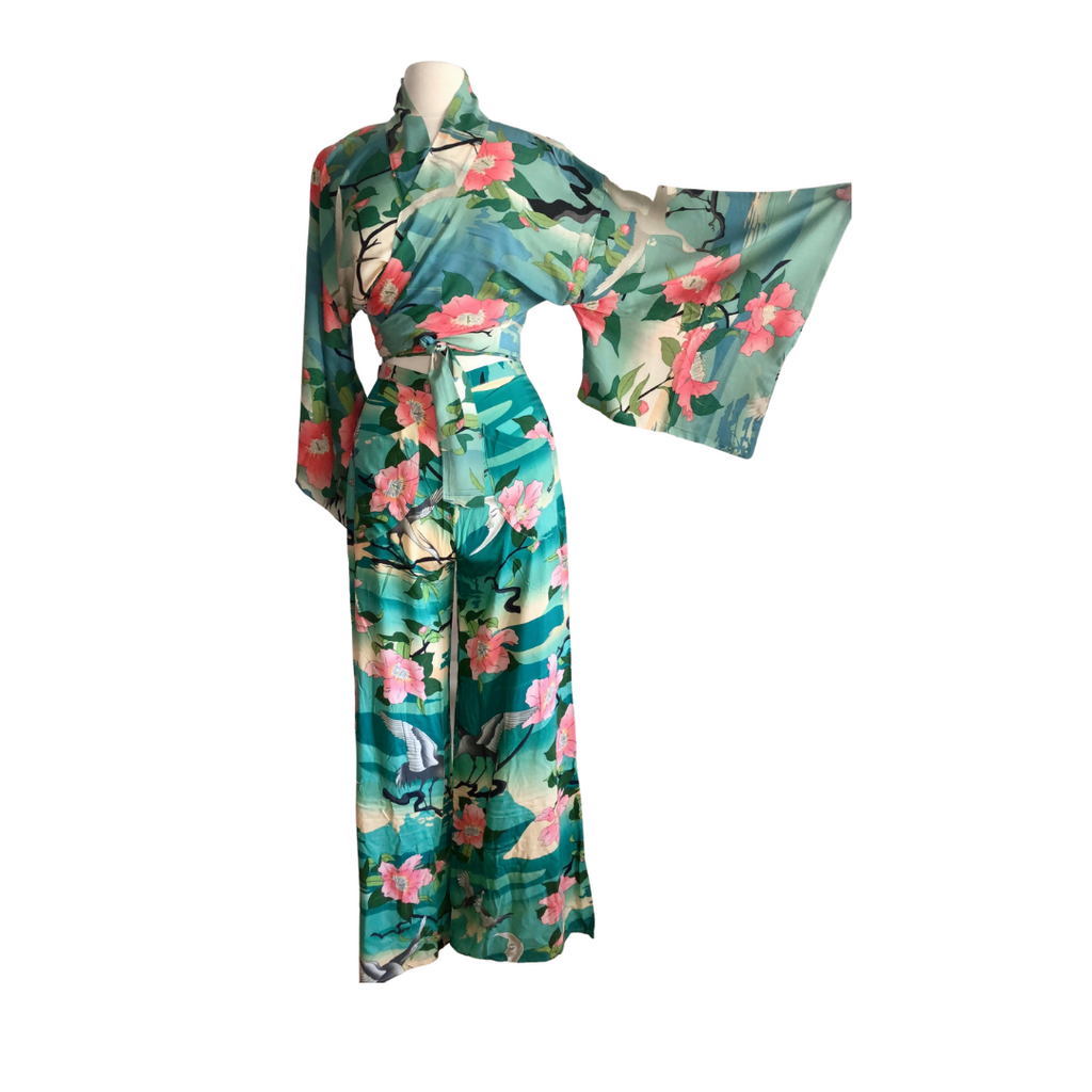 Carry Me Away 1940s Kimono Style Top Lounge Set Size 6-8