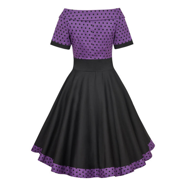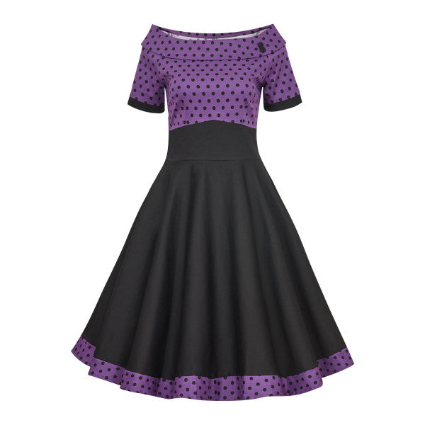 Dolly & Dotty Darlene Purple & Black Polka Dot Swing Dress