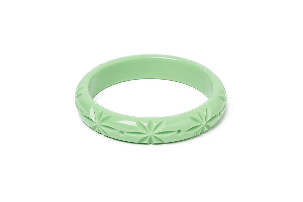 Splendette Vintage Inspired Heavy Carve Bangles In Tea Green