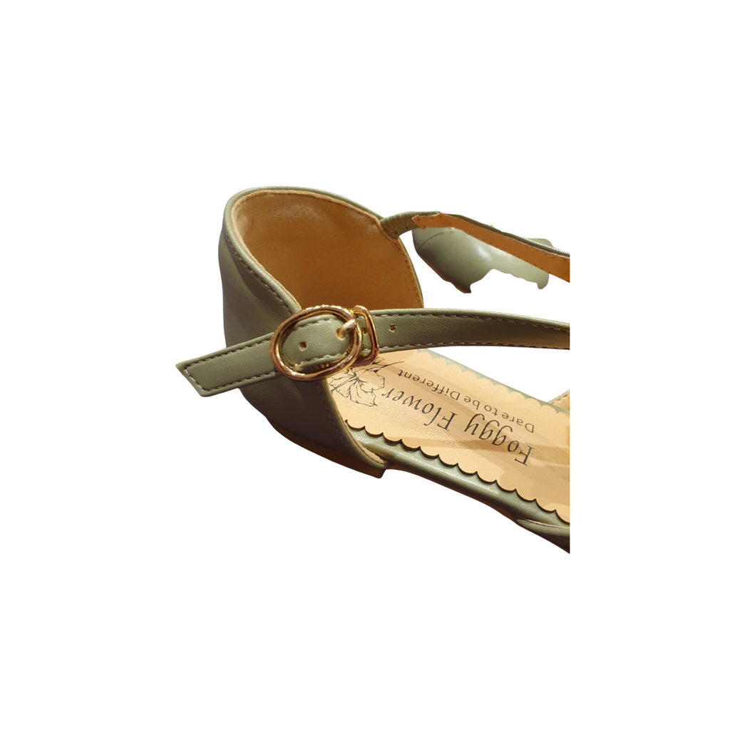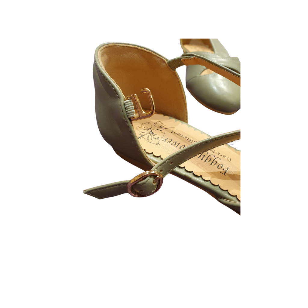 Edith Closed Toe Flat T Bar Shoes In Light Khaki Green Only 40(6.5) left