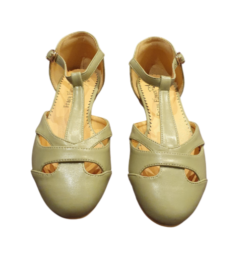 Edith Closed Toe Flat T Bar Shoes In Light Khaki Green