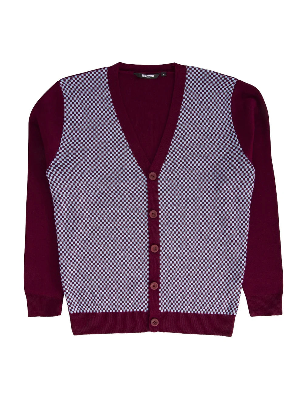 Relco Burgundy & Sky blue Check Cardigan - Chas