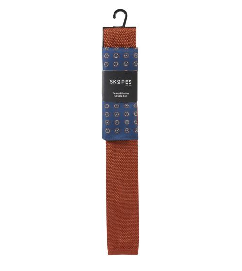 Rust Knitted Bow Tie & Navy Pocket Square -