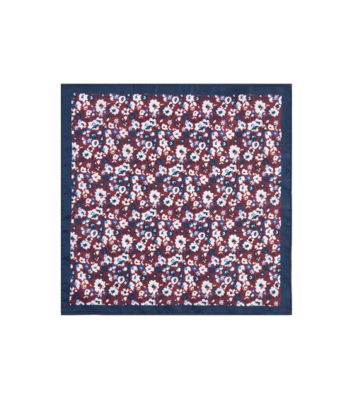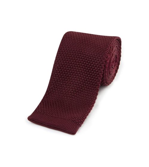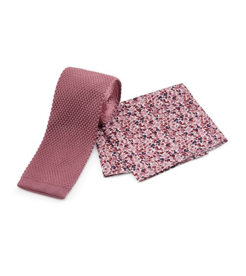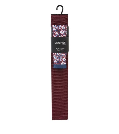 Wine Red Knitted Bow Tie & Floral Pocket Square -