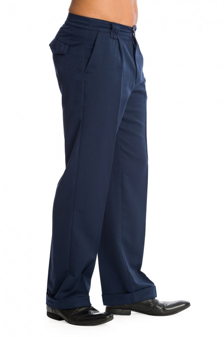 Banned Get In Line Navy Blue 40s 50s Style Turn Up Trousers
