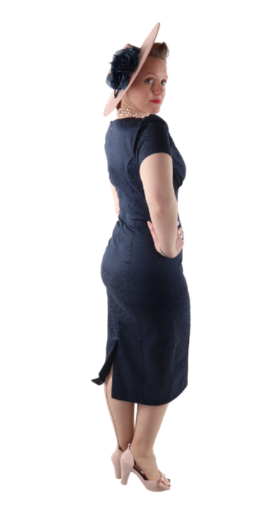 The wiggle or pencil dress first came about in the 1940s but became much more popular in the 1950s.