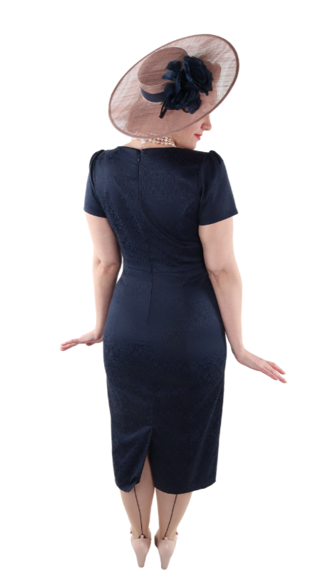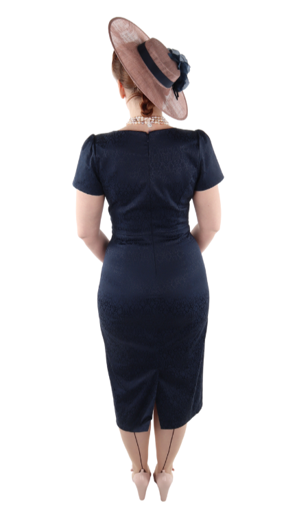 Rebecca Wiggle Dress With Short Sleeves In Blue Jacquard