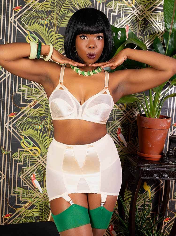 An open bottom girdle is a must have addition to your lingerie drawer if you wear tight pencil skirts or wiggle dresses. The Glamour Girdle contours the body to give an extremely smooth line under clothing. In addition, it gently shapes your tummy and hips.