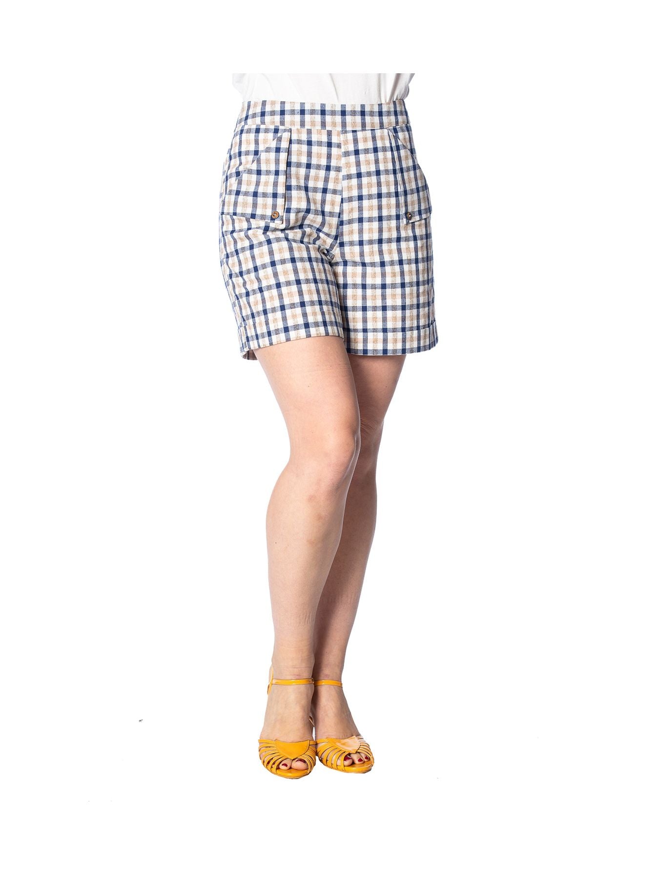 Check shorts with pockets.