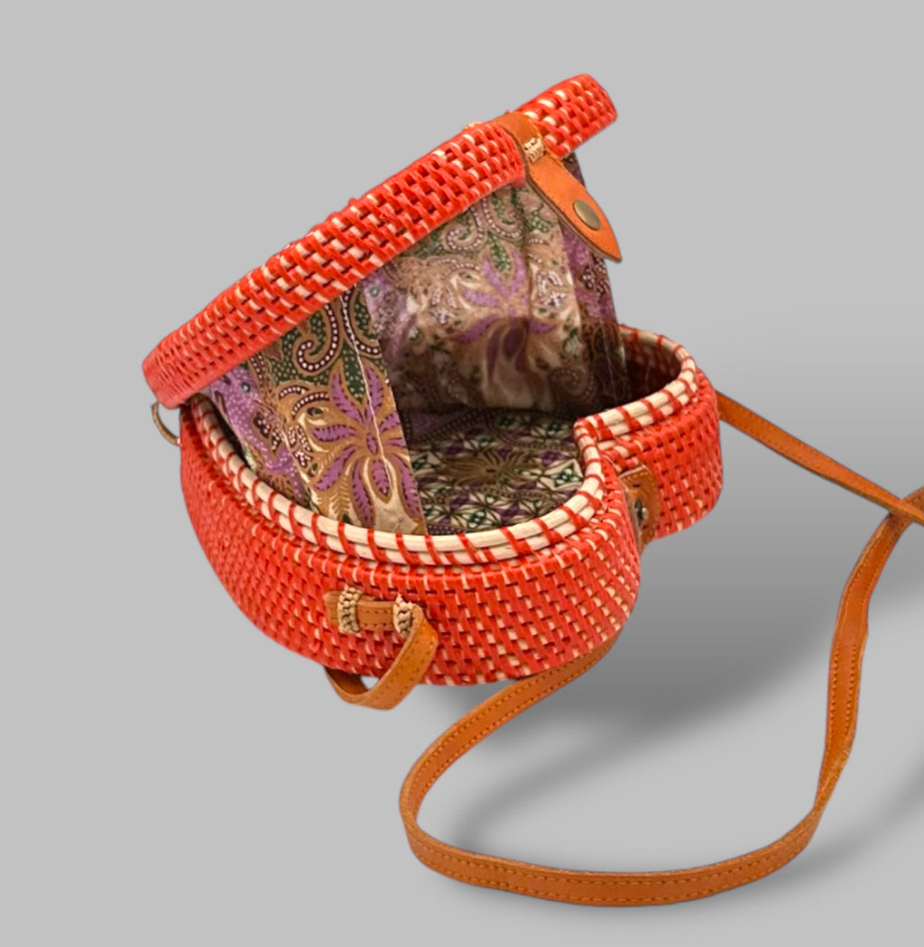The Bali Collection Heart Rattan Shoulder Bag - Red