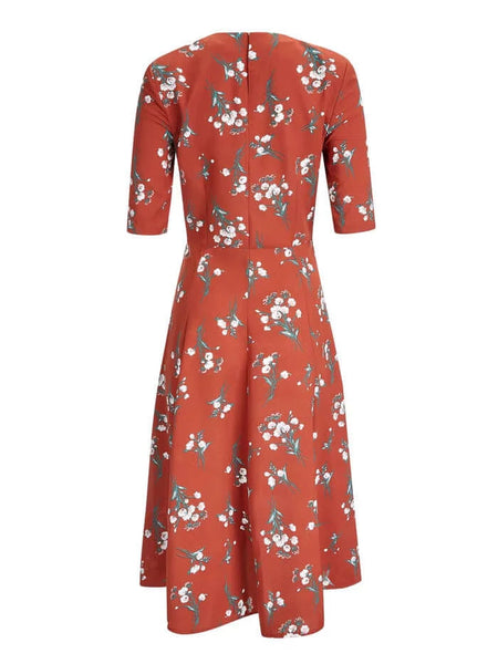 1940s Replica Russet Floral Tribute Square Neck Dress With Sleeves