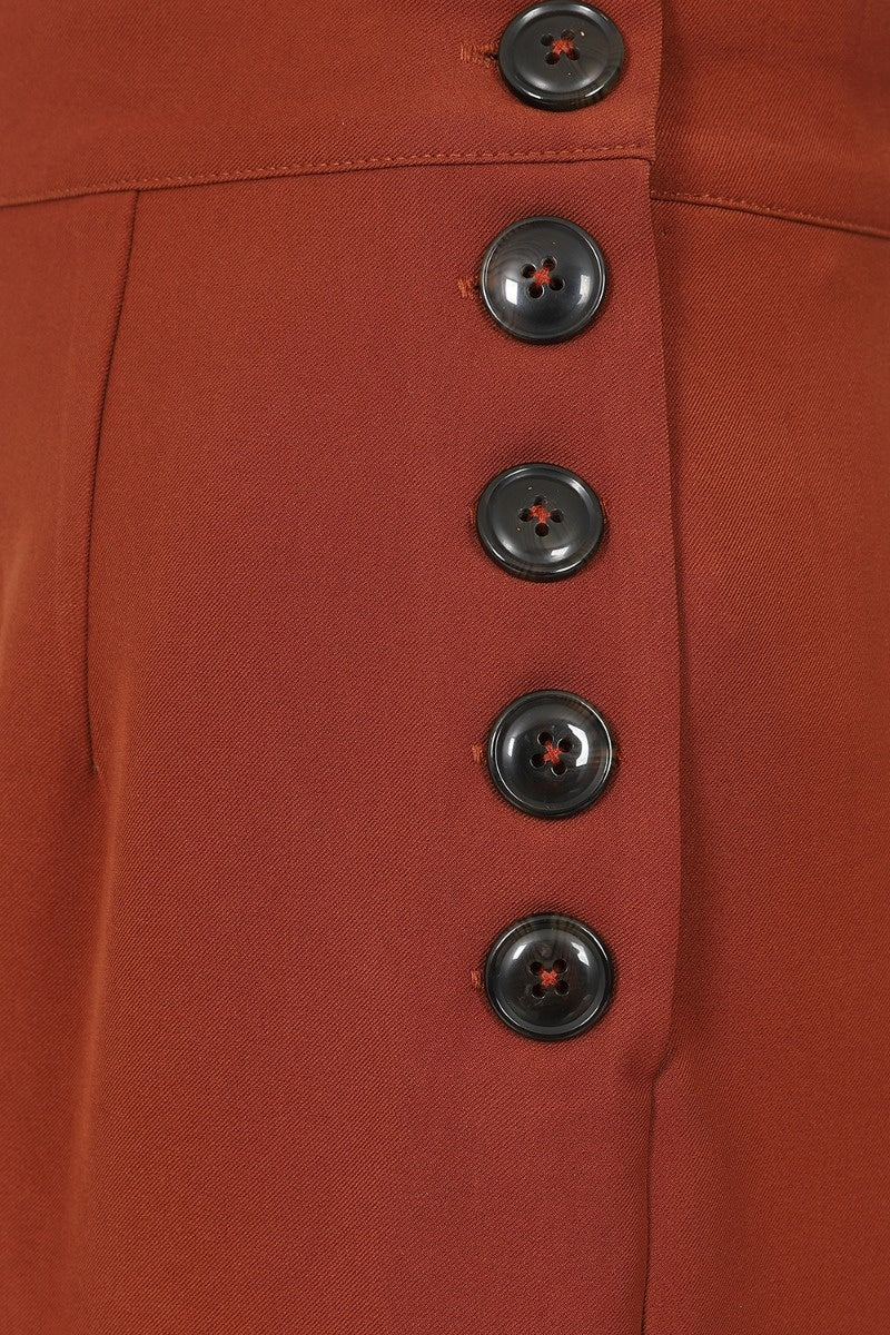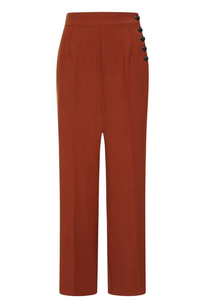 Ginger Vintage Style High Waisted Swing Trousers In Brown