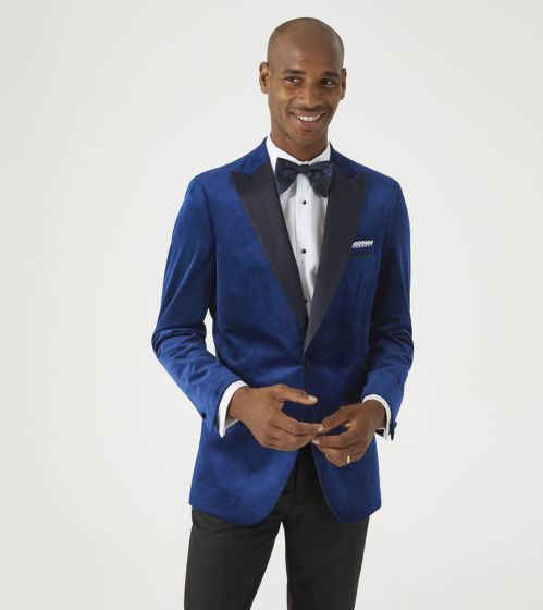 Jive velvet jacket in Royal Blue with satin peak lapel.