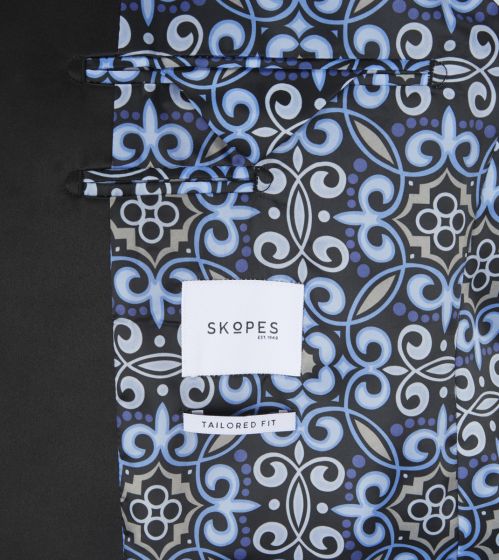 I’m Jive, a single-breasted jacket that’s ready and raring for any party. I’ve got some great moves to keep you looking dapper - from my blue velvet cloth and satin lapel, to my printed lining and pull-out pocket hankie. Go on, try me on. The dancefloor’s calling our names.