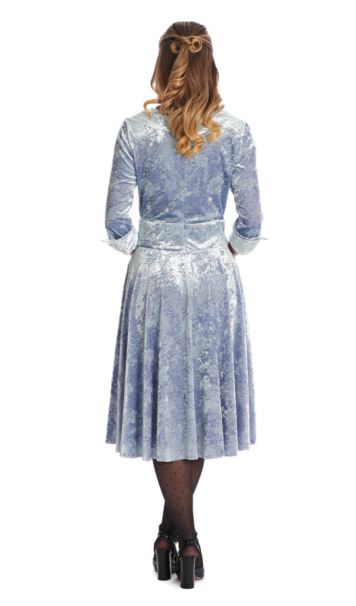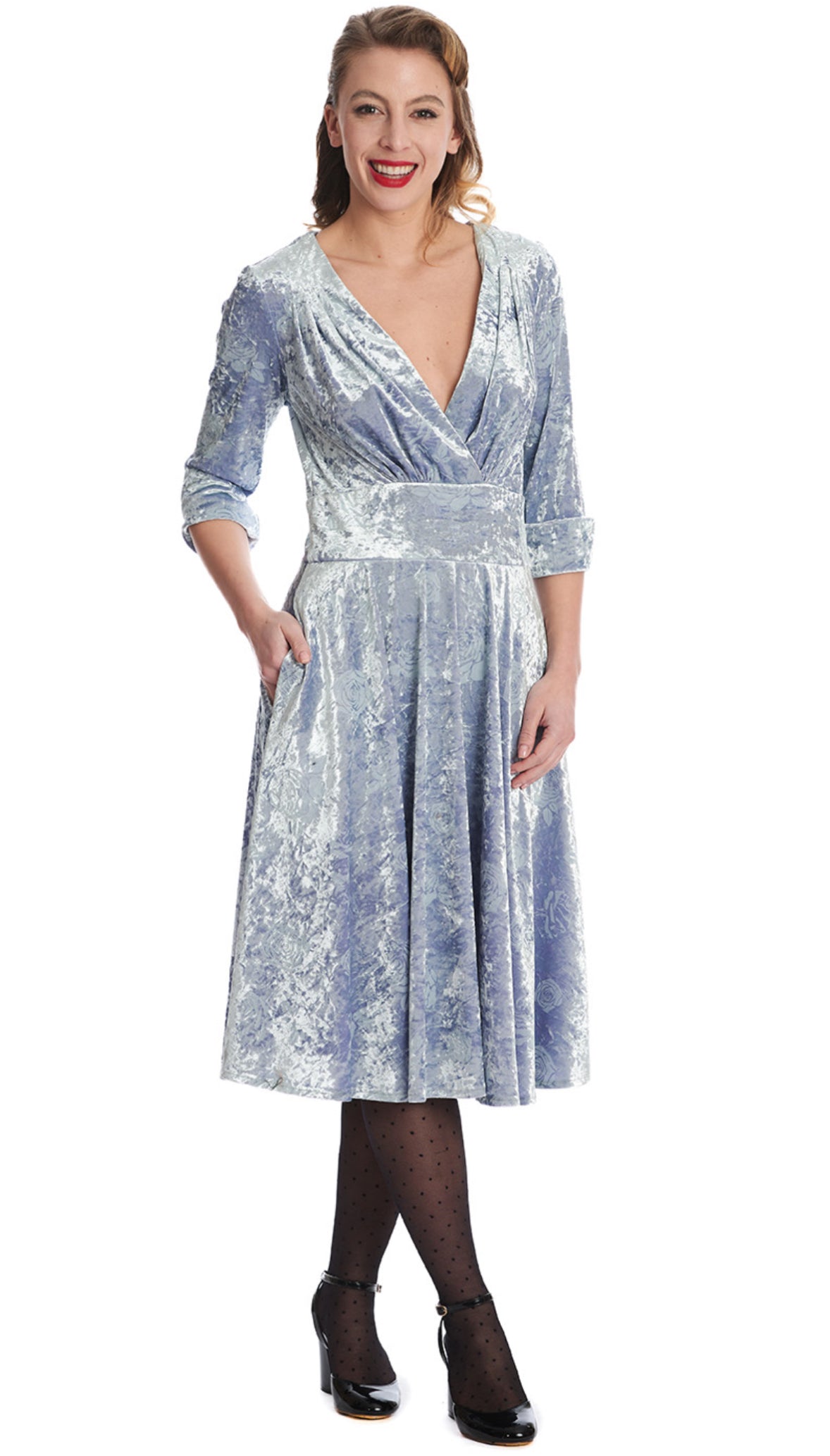 This velvet 3 quarter sleeve dress is perfect for party season. A simple yet elegant floral velvet design with a v neckline, full circle skirt, and the added bonus of POCKETS!!