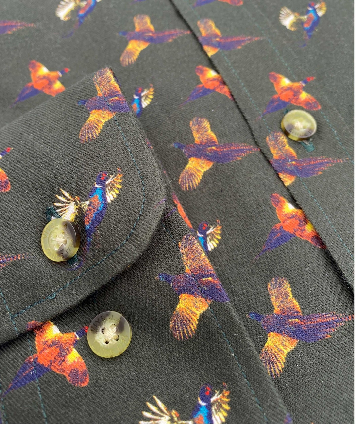Viyella Cotton Green Pheasant Print Classic Fit Shirt